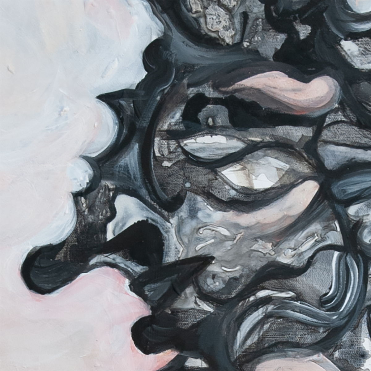 Puis captant l'intensité de l'instant présent, sous mon pinceau, naissent des traits qui s'enchevêtrent tels des fils imaginaires.